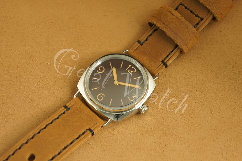 45mm Radiomir Style Watch - 1:1 case, max 300m Water resistant (swimmable) Colorless AR coating Sapphire or Domed Plexiglass